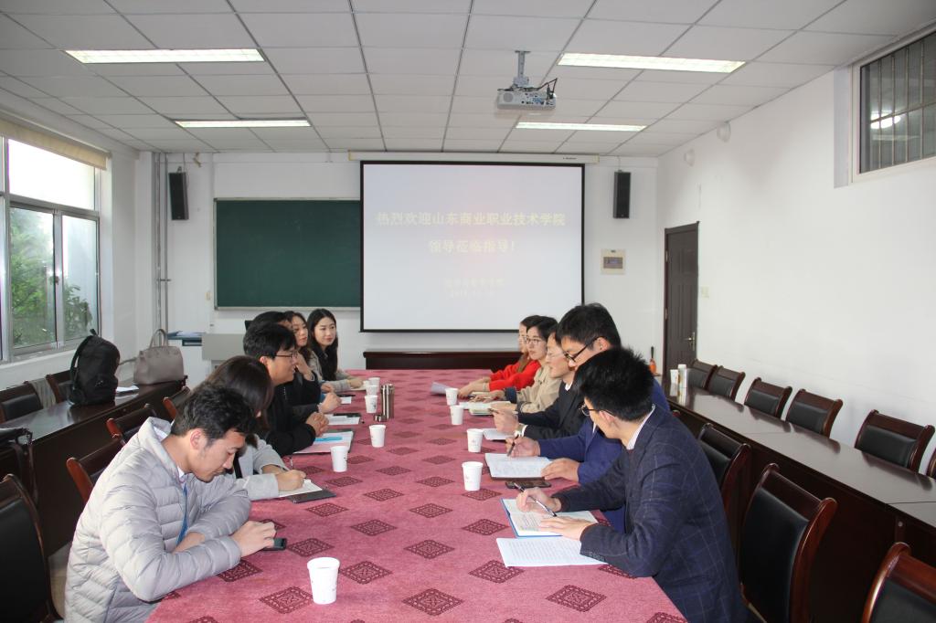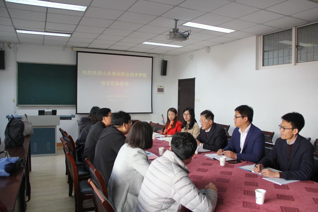 11月16日,山东商业职业技术学院一行6人来访9001jcc金沙以诚为本,就党建、学生教育管理、创新创业教育、宣传等工作进行了交流,9001jcc金沙以诚为本党总支书记李德成、分团委全体专职辅导员参加了会议。