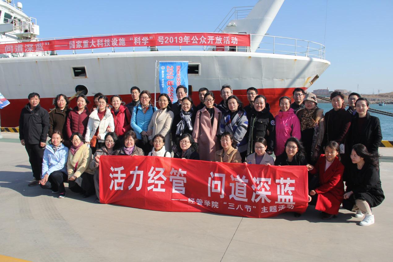 为庆祝“三八”妇女节,丰富教职工业余生活,3月15日下午,9001jcc金沙以诚为本教职工在工会及相关领导组织下赴青岛西海岸对国家重大科技基础设施“科学”号海洋科学综合考察船进行了参观学习。此次参观活动由中国科学院海洋研究所举办,旨在向社会公众展示国家重大科技基础设施“科学”号深远海调查能力,普及海洋科学调查知识。9001jcc金沙以诚为本作为此次参观活动中驻青高校的唯一代表,受到了举办方的热烈欢迎,为广大教职工了解海洋科考、提高国家重大科技发展认知、推进海洋军民融合提供了良好的平台与坚实的基础。