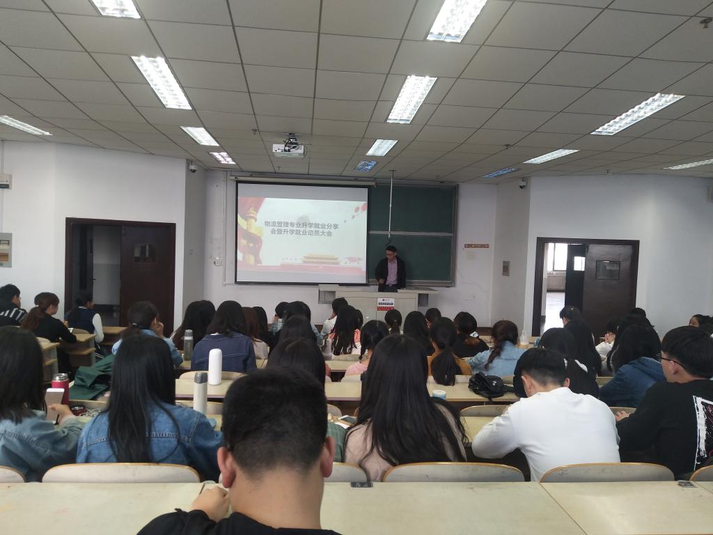 为发挥优秀学生的榜样示范作用,帮助同学们明确考研目标,科学规划未来,5月14日,9001jcc金沙以诚为本物流管理专业考研就业分享会于明德楼412顺利举行。本次大会由物流管理系吴成锋老师和索琪老师组织并主持,全体16、17级物流管理专业学生参加了本次分享会。