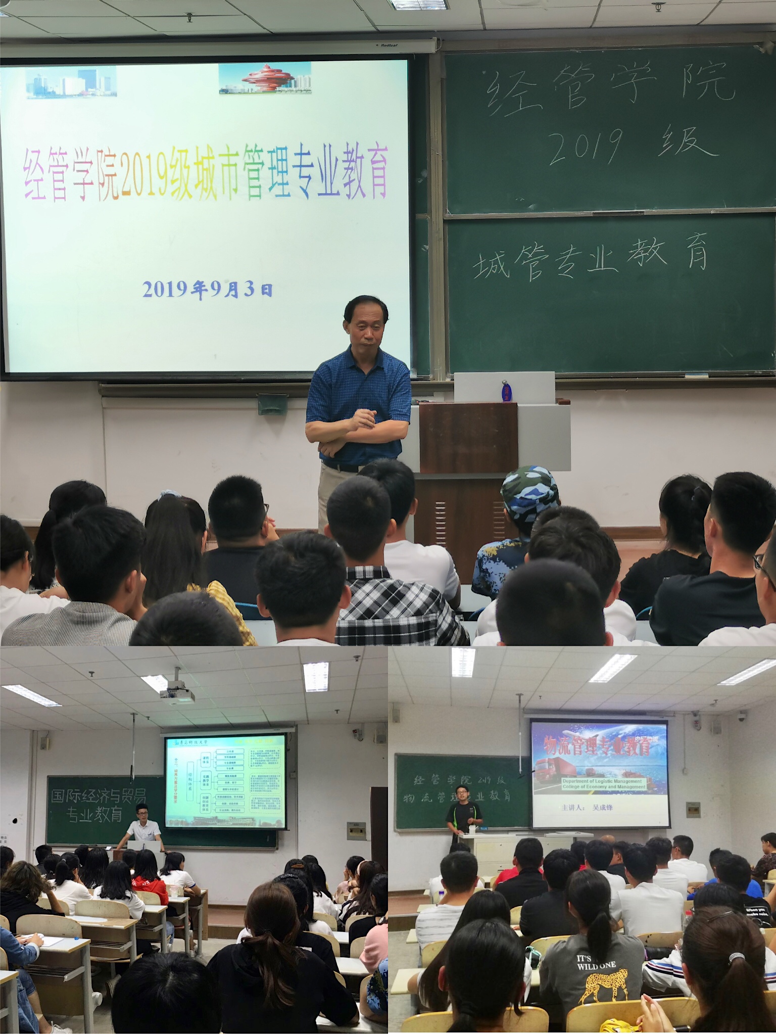 9月3日晚,9001jcc金沙以诚为本工商管理系、国际经济与贸易系、工业工程系、物流管理系、财务与会计学系、城市管理与区域经济系、市场营销与情报学系于明德楼开展2019级新生专业教育活动。各系主任、教师代表、2019级辅导员参加此次活动。