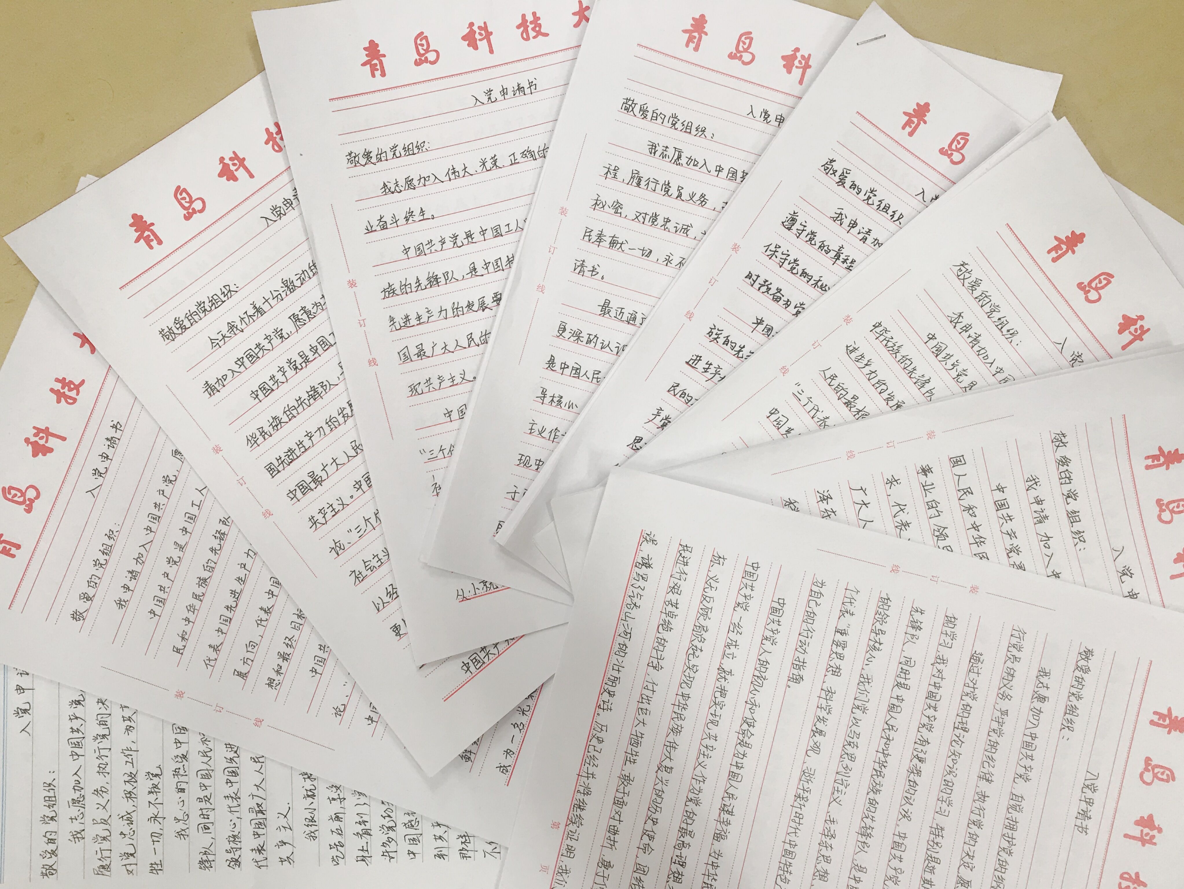 针对刚刚入学的大一新生,学院把思想引领教育放在首位,面向全体学生开展“我和我的祖国”主题征文,活动得到了同学们的积极响应。在征文活动中,多彩的故事娓娓道来,每个人的小故事,汇集成国家的“伟大的叙事”,国家的发展与进步,也让每个人对美好生活的向往最终变为现实。在爱国精神的感召下,一大批年满18周岁的本科生向学院本科生党支部递交了入党申请书,以用心书写的入党申请书,表达对党深沉的感情和热爱,以实际行动向党组织靠拢。