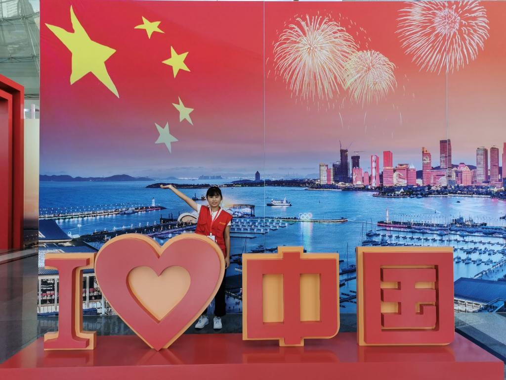 今天是祖国70华诞,我在“青岛70年成就展”当志愿者。虽然没有见证祖国70年完整的发展史,但在展会上,我深刻地体验到祖国由站起来到富起来再到强起来的全过程。我出生在2000年,是祖国母亲51岁那年,如今祖国母亲已经70岁了,祝福你,我亲爱的祖国,愿你繁荣昌盛,更上一层楼!