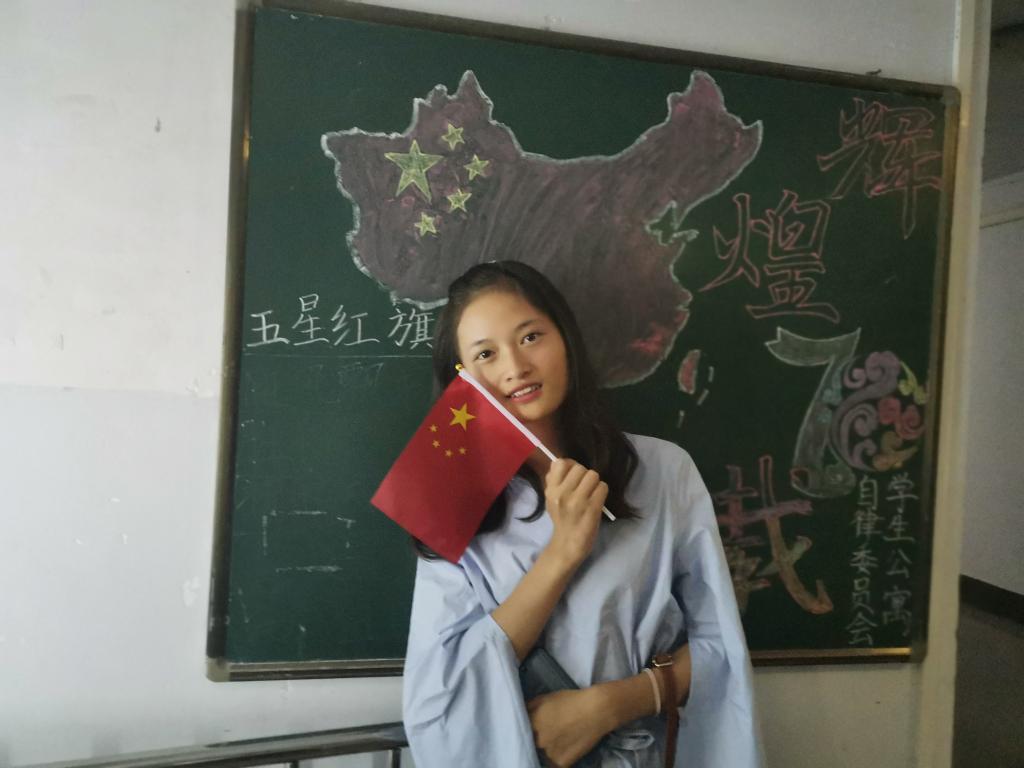每当我看到国旗冉冉升起,我就会想到祖国几十年的风雨征程。70年来,我们的祖国母亲历经沧桑,复兴之路坎坷曲折。她如同婴儿一般,从蹒跚学步成长为热血青年。正如那升起的红旗,让人为她的火焰赤色动容。我感慨她的成长,我希望自己可以与祖国同行,吹响新时代的号角,不忘初心,砥砺前行,共同谱写新中国壮美华章!