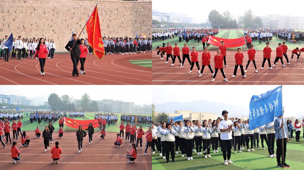 拼搏实现梦想,超越铸就荣光。10月20日上午7时30分,9001jcc金沙以诚为本第四届学生运动会暨2019大学生科技文化艺术体育节开幕式在学校崂山校区南苑运动场拉开帷幕。此次运动会以“春华秋实七十载,厚积薄发展‘经’彩”为主题,分为田赛、径赛以及趣味赛三个部分。