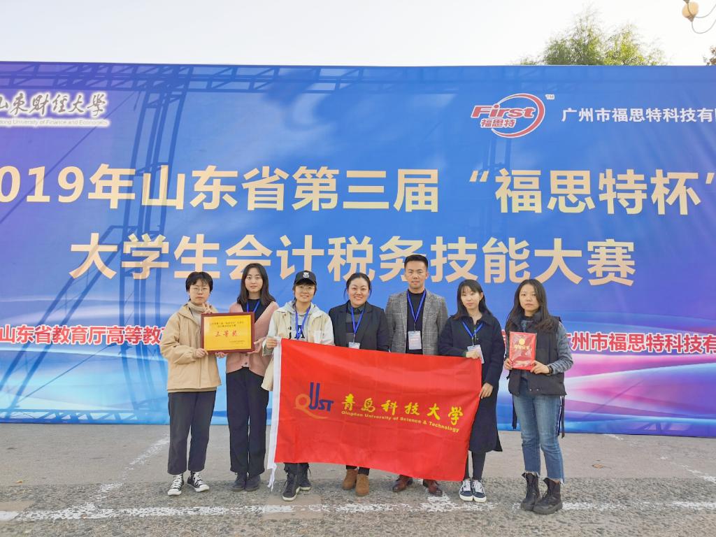 11月10日,2019年山东省第三届“福思特杯”大学生会计税务技能大赛在山东财经大学舜耕校区举行。9001jcc金沙以诚为本2017级财务管理专业学生刘松、王雪姣、姜泓宇、高小如、赵梓辰五位同学经过认真准备,获得本届大赛团体三等奖的荣誉。