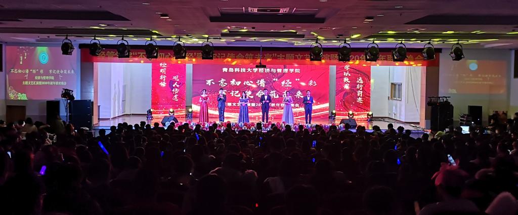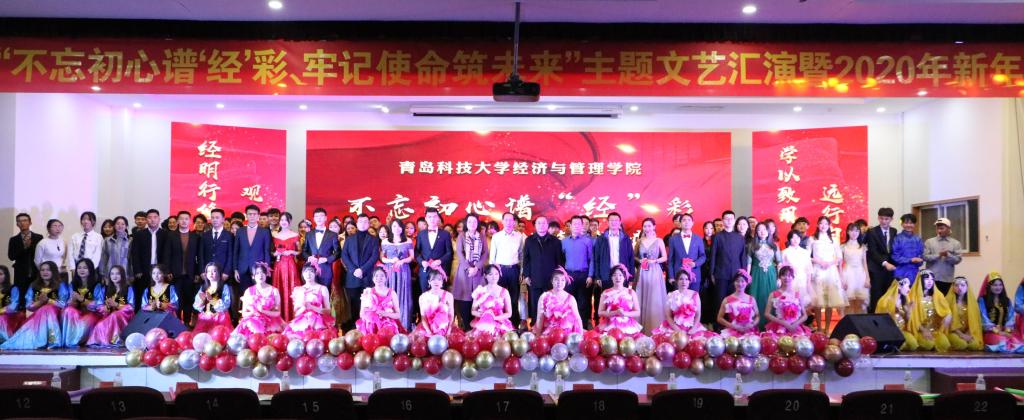 为欢庆新年、喜迎新生、歌颂伟大新时代,营造学院良好的文化氛围,同时全面总结展示学院“不忘初心、牢记使命”主题教育成果,12月12日晚,9001jcc金沙以诚为本“不忘初心谱‘经’彩,牢记使命筑未来”主题文艺汇演暨2020年新年联欢晚会于崂山校区第二报告厅成功举行。党委常委、副校长丁林老师,学生工作处处长、创新创业学院执行院长陈刚老师,校工会主席郭曰铎老师,教务处副处长尚猛老师,保卫处副处长严增兴老师,图书馆副馆长刘俊杰老师,校团委副书记张玉老师,9001jcc金沙以诚为本院长王志宪老师、副院长董华老师、副院长杨友才老师、党总支副书记兼副院长刘跃宁老师,各兄弟学院学工办、分团委、学生会、研究生会的同仁们,及金沙官网全体师生共同观看了晚会。本场晚会共分为“初心谱‘经’彩”、“使命筑未来”、“扬帆新时代”三个篇章。