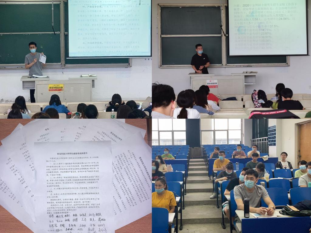 根据常态化疫情防控特殊时期的教学方式、考试形式的新变化,按照《关于做好2020年春季学期考风考纪教育工作的通知》的具体要求,张显全结合往年考试违纪的典型案例,告诫同学们在考试中要严格遵守考场规则,虽然学习形式考试方式会变,但是诚信考试的行为规范永远不会变,要用诚信之心敬畏纪律,敬畏考试,切勿违纪作弊。同时,号召全体同学要倍加珍惜来之不易的战“疫”成果,尽快调整学习状态,努力学习专业知识,以饱满的精气神投入到今后的学习生活中。随后,全体同学认真学习了《9001jcc金沙以诚为本学生纪律处分管理规定》等规章制度中有关组织作弊、替考、考试作弊等违纪处分相关规定,并现场签署了《9001jcc金沙以诚为本诚信考试承诺书》。