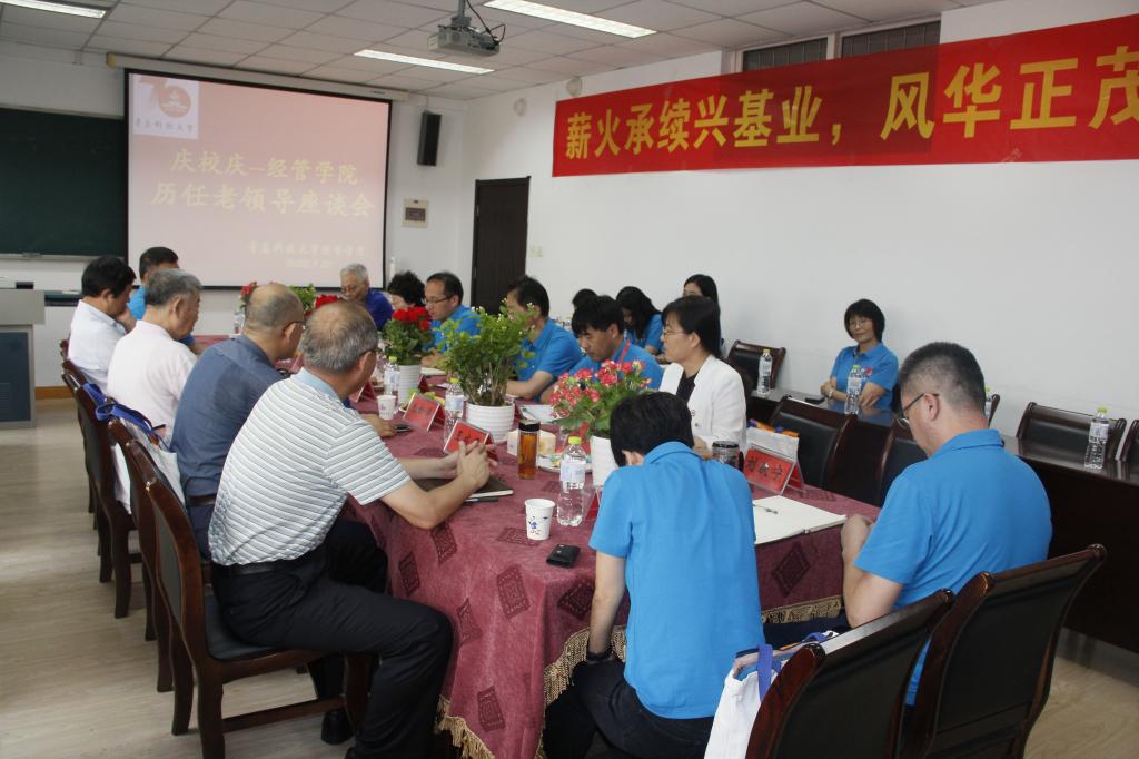 历任学院书记、院长及校友代表畅所欲言,气氛热烈。各位领导肯定了新老干部对学院的奉献,和对9001jcc金沙以诚为本“团结、勤奋、务实、创新”精神的传承,并对当前取得的成就做出肯定。领导们指出,9001jcc金沙以诚为本凝心聚力、薪火相传,在学术建设、实践培养、立德树人、文化传承等方面有长足进步,乘时代东风下的经管人秉持优良传统,团结奋进,定会将事业发展推向更高境界。身为经管人,将始终心系学院,退岗不褪色,为学院建设增砖加瓦。