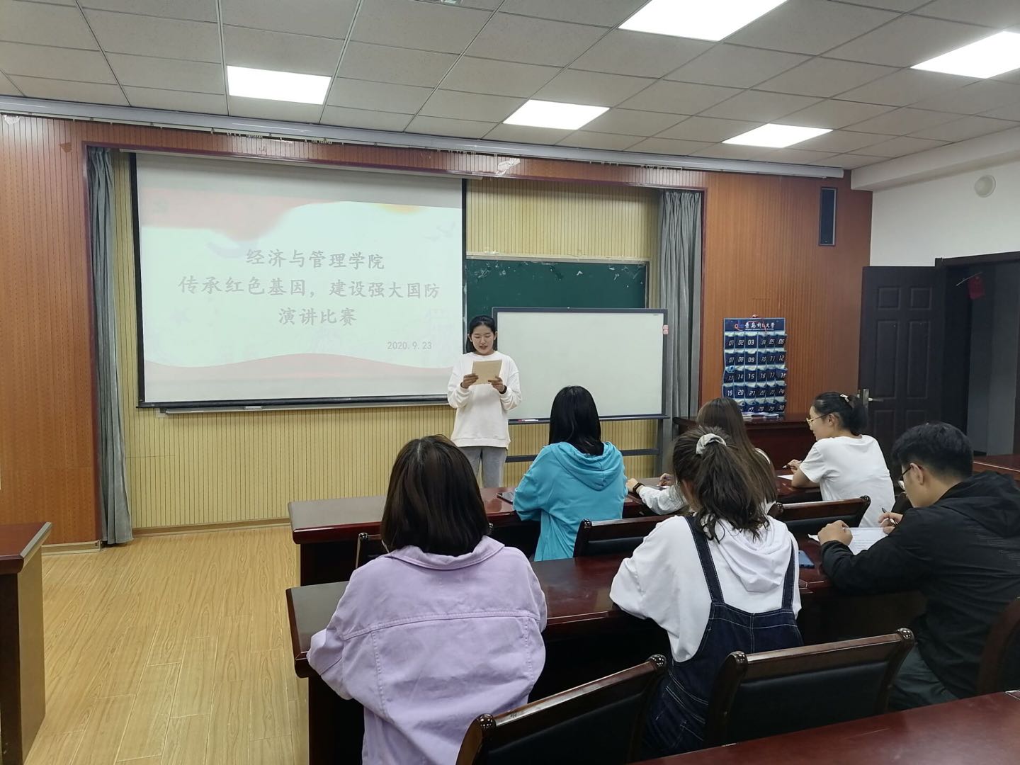 为加强全民国防教育,激发大学生崇尚英雄、敬重军人、关心国防的热情,弘扬爱国主义精神,传承红色基因血脉,9月23日,9001jcc金沙以诚为本于经管楼419室顺利举办“传承红色基因,建设强大国防”主题演讲比赛。