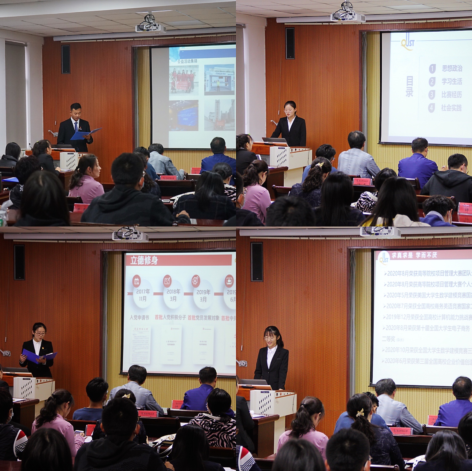 为充分发挥榜样示范作用,启动仪式结束后,学院举行了山东省国家奖学金、省政府奖学金答辩会。城管182班袁炳顺、财务172班姜泓宇、物流172班姚天 姿、财务(ACCA)172班李珊珊、营销172班肖映彤、财务(3+4)171班许心如、城管172班姜延杰、物流182班彭承琪、管理181班韩育、国贸182班刘畅、营销192班马小淳、财务181班王倩、工业171班岳玲玲、财务(3+4)181班张洲卉、工业182班高广旭、管理192班张娜等16名候选学生依次上台,从个人经历、学习情况等方面全方位进行了个人风采展示。