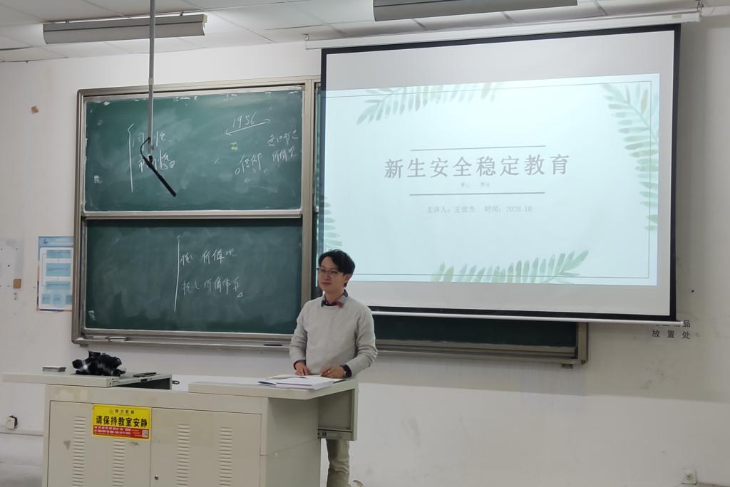 为深入贯彻学习教育部近期部署教育系统疫情防控和学校传染病防控工作的通知要求以及学校的安全稳定管理要求,提升学生安全防范意识和避险能力,全力保障学生在校安全。10月26日晚,9001jcc金沙以诚为本于弘毅楼E102室、E202室举行新生安全教育大会。会议由2020级辅导员付凯、王世杰主持,9001jcc金沙以诚为本全体新生参加会议。
