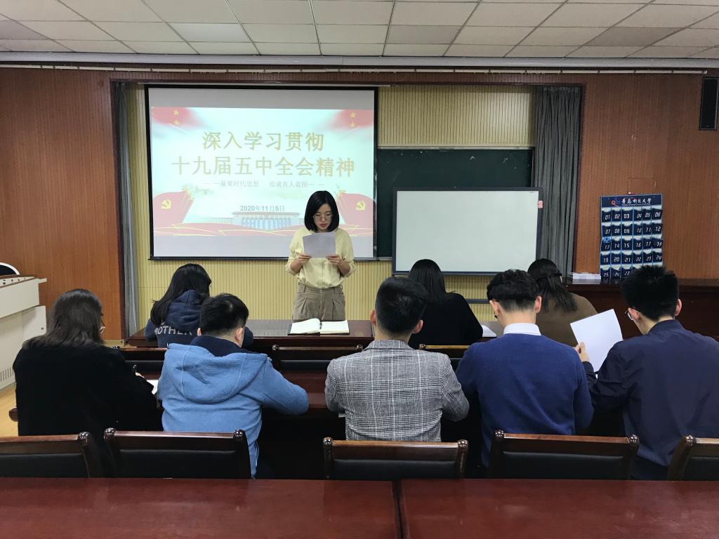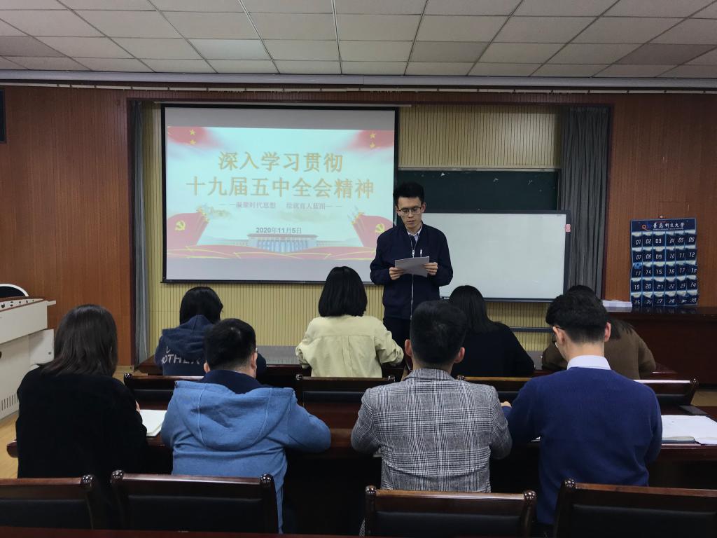 2020年10月5日下午,9001jcc金沙以诚为本学工办、团委组织开展十九届五中全会及团中央书记处会议精神学习,全体专兼职辅导员参加学习,学院团委副书记、学工办副主任王聪、张显全主持并领学。