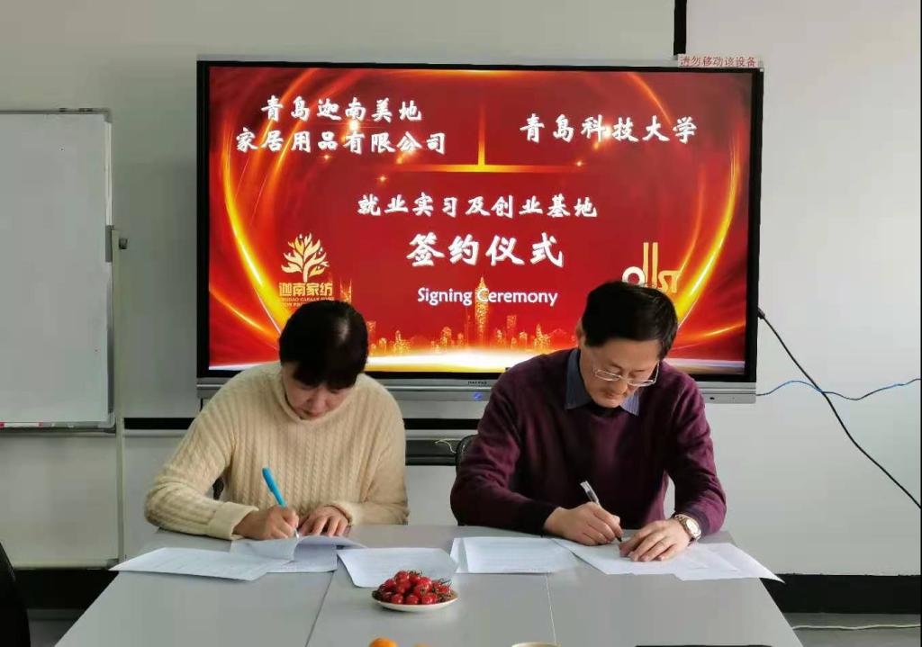 2020年12月9日,9001jcc金沙以诚为本与青岛迦南美地家居用品有限公司(以下简称迦南美地)实习基地签约挂牌仪式在迦南美地综合会议室举行。出席签约仪式的有迦南美地总经理周晓辉女士及单位负责人,9001jcc金沙以诚为本党委书记李德成及教师代表。