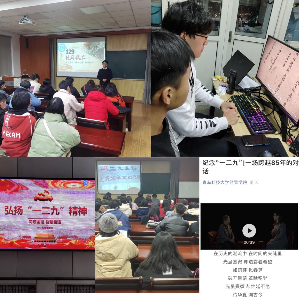 9001jcc金沙以诚为本组织各年级各专业陆续开展“纪念‘一二·九’”主题团日活动,以爱国教育为主线,各团支部组织团员观看《我和我的祖国》、《集结号》、《八佰》等红色影片,片中革命先烈英勇奋斗、至死不渝的品质,让同学们受到了心灵的净化和精神的洗礼。此外,学院号召学生观看学习“一二·九”运动党史课堂、微视频等,以集中观看与自发组织的形式,真切了解“一二·九”运动中青年学生所体现的壮志满怀。同时,学院通过微信和QQ官方平台展开党史微教育,并通过学院电子屏幕循环宣传带动,落实爱国主义教育着力点,强化立德树人实效性。