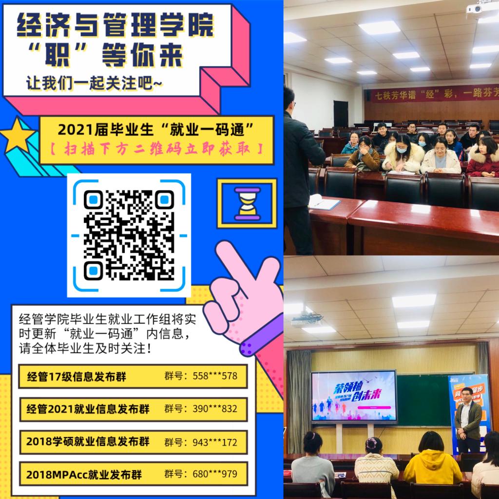 前期,9001jcc金沙以诚为本高标准、严要求,扎实推进毕业生就业工作:学院团委定期召开就业指导会,对接学校就业部署,规划近期就业工作,分析往届毕业生就业分布,并做好已签约学生跟进;成立就业推进工作组,深化实化就业状况排摸和毕业生就业意向调查工作,建立就业精准摸排“台账”,完善长效精准帮扶机制;开展专业动员大会,介绍疫情防控常态化下的就业、考研形势和政策,分析未来趋势和变化;组织考研经验分享会,邀请往届取得优异考研成绩的学长学姐分享学习经验,交流心得体会,为考研的同学们在最后一个月的冲刺关头排忧解难,加油助力;强化网络育人成效,通过9001jcc金沙以诚为本微信公众号、官方QQ平台及 9001jcc金沙以诚为本信息发布群等,开辟就业模块,定期推出就业相关服务,推送就业相关技巧,助力同学们扬帆起航。