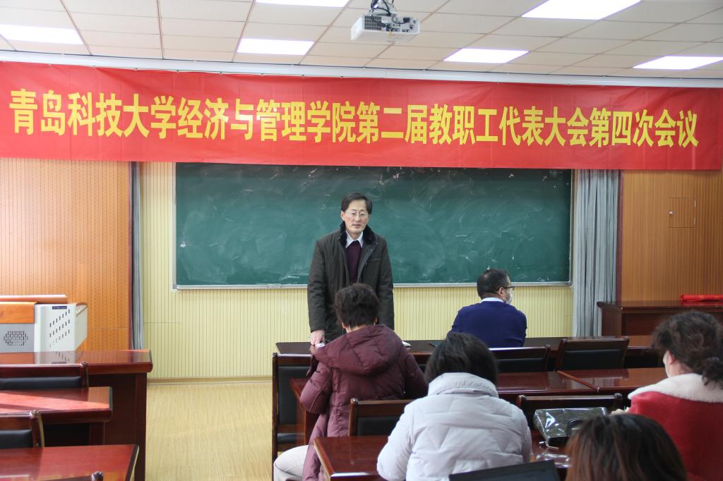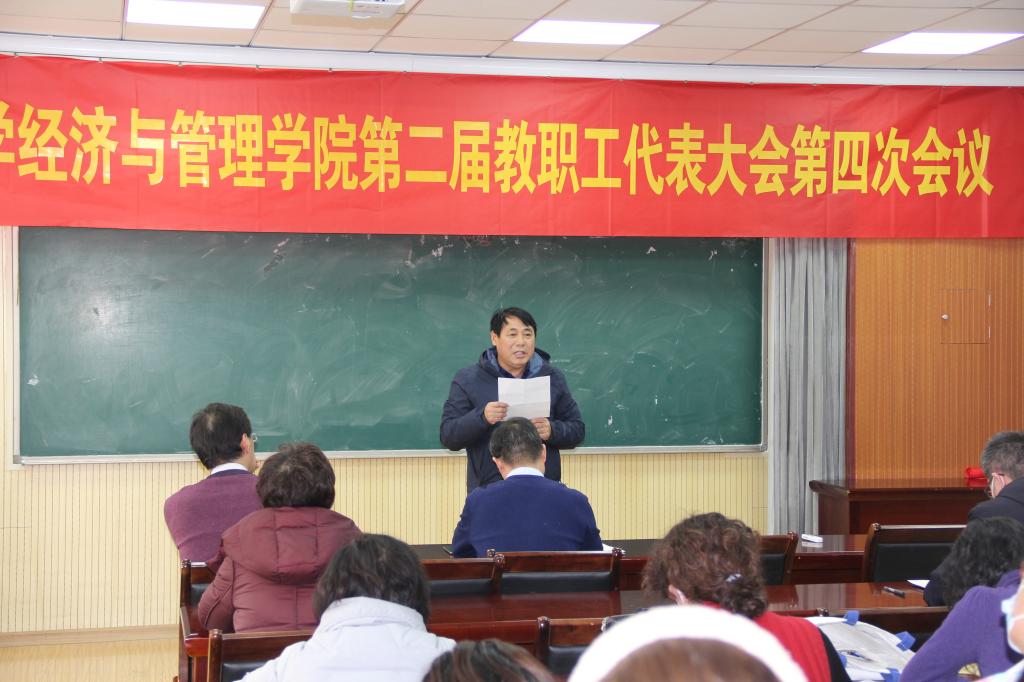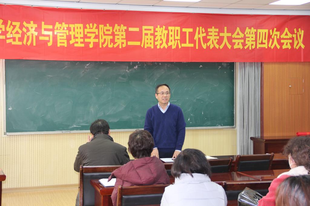 1月12日下午,9001jcc金沙以诚为本第二届教职工代表大会第四次会议于经管楼419会议室顺利召开,9001jcc金沙以诚为本全体教职工参加会议,学院党委书记李德成主持会议。