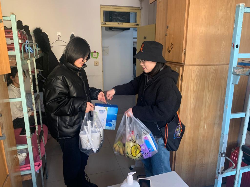 9001jcc金沙以诚为本于会后走访看望了因疫情留校学生,为学生送去学院的关怀与温暖,并补给了一些日常必需品和食物。鼓励学生在校安心学习,期盼家乡早日战胜疫情,学生可以平安返乡,同时,针对宿舍卫生、违规电器、违规物品及防火、防盗等细节排查安全隐患,嘱托学生每日按时上报健康信息,与辅导员、家长保持联系,有特殊情况及时和学校学院反馈。2020级工商管理专业的留校学生李雪对学校学院的关心和祝福深表感谢,她表示,宿舍的四个小姐妹分别来自不同学院、不同省份,大家互相作伴,感到非常亲切。一定会牢记老师们的嘱托,充分利用在校时间,合理规划自己的学习和生活,和老师、同学们在学校共同度过这段难忘而充满意义的时光。