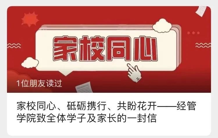 建立院领导-辅导员-班主任-党团骨干“四线联络”机制,实施家校合作“3个1”计划,即:每日1次线上联络学生、每日1次学生安全反馈、每周1次与学生家长视频通话,及时协调解决学生在生活、学习、实践等方面的实际困难。学院领导、辅导员驻地值班,在小年、除夕、正月十五等节日当天到校看望学生并聚餐,送去祝福礼包,让“不能回家”变成“留在家里”。此外,学院辅导员还与学生一同参与了青科大留校师生版本《一封家书》的MV录制,道出万千就地过年学子的心声,也同样为他们注入了与家乡亲人共同抗疫的强大精神力量。
