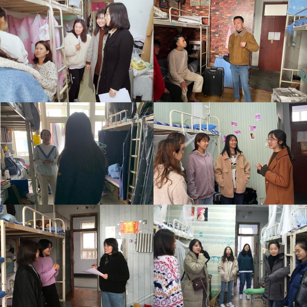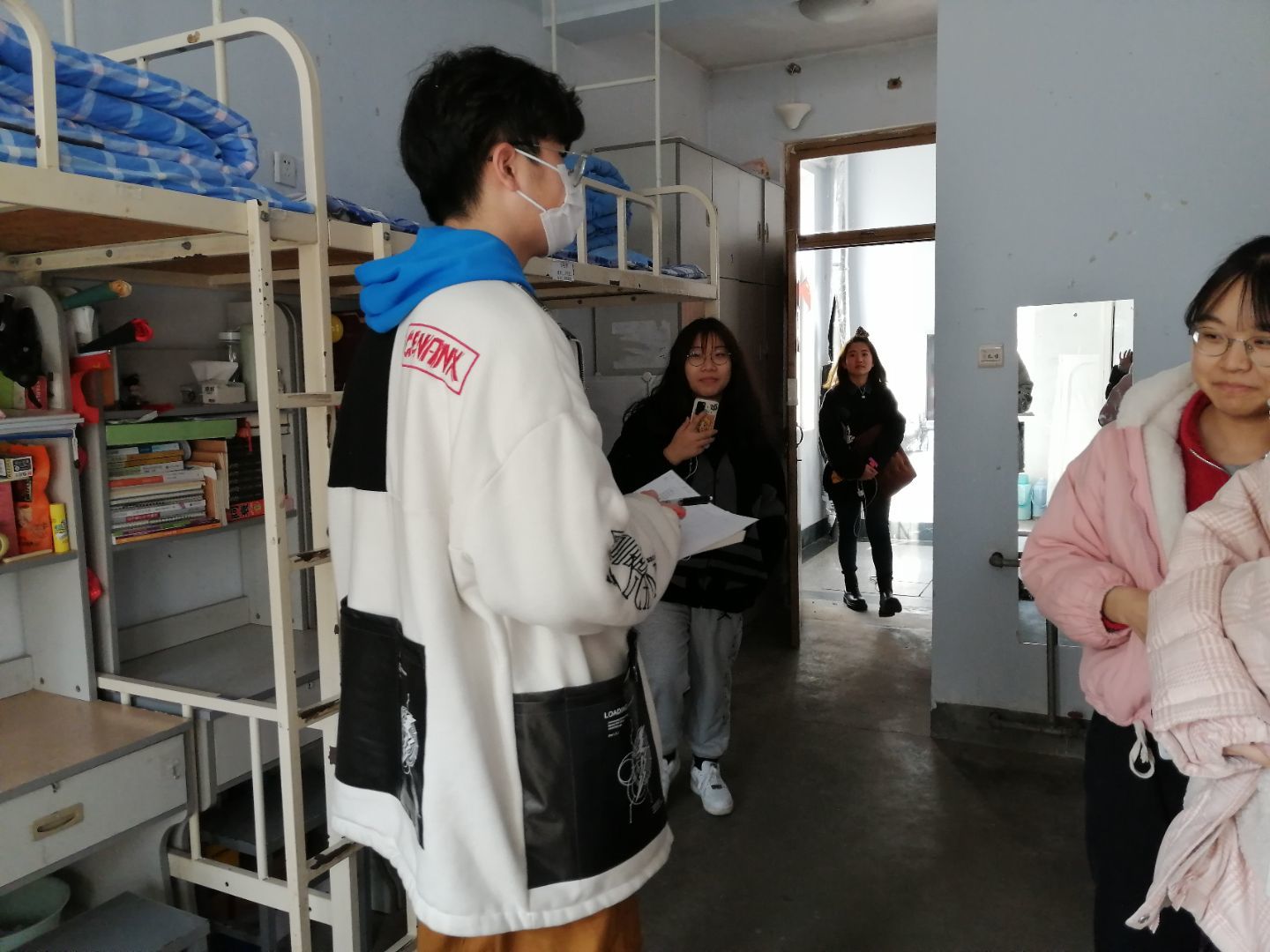 为贯彻落实学校疫情防控安排和春季学期开学工作要求,新学期返校报到后,9001jcc金沙以诚为本安排各年级辅导员老师及学生骨干走访学生寝室,落实疫情常态化管理工作之余,亲切问候返校归来学子。