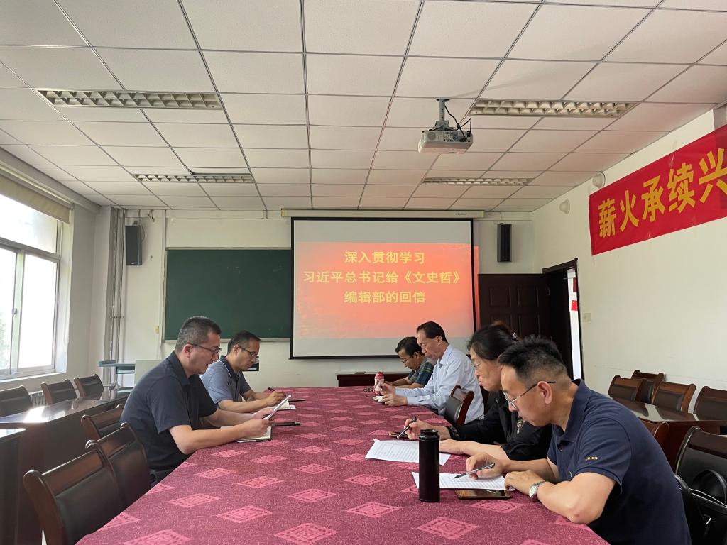 6月16日下午,9001jcc金沙以诚为本组织召开《深入贯彻学习习近平总书记给< 文史哲>编辑部的回信》专题会议,全面深刻理解习近平总书记对于弘扬中华文明、繁荣学术研究方面的重要指示精神。副院长吕承超主持会议,院长李勋来及教师代表参与学习。