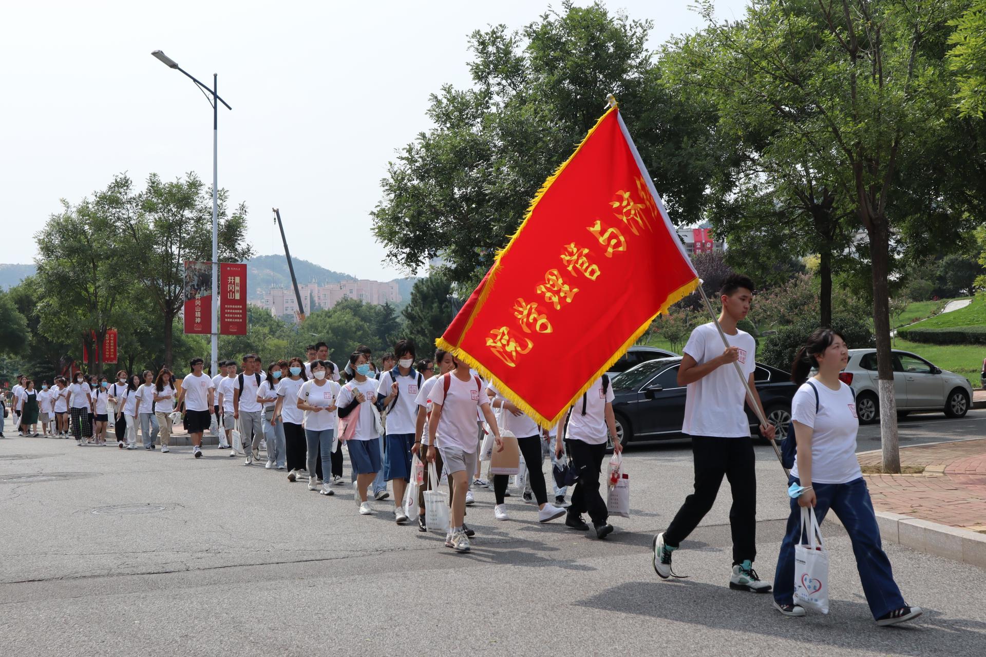活动以学校红色体育运动打卡点为依托制定路线,沿途辅导员化身“导游”,以“探校”的形式向新生同学介绍了学校各建筑场所及其功能。每到一处打卡点,辅导员都亲自示范打卡点操作步骤,并结合打卡点屏幕所现实的长征精神、沂蒙精神等进行讲解,更好的将“体育”与“思政”功能结合起来,实现了“1+1>2”的良好效果。