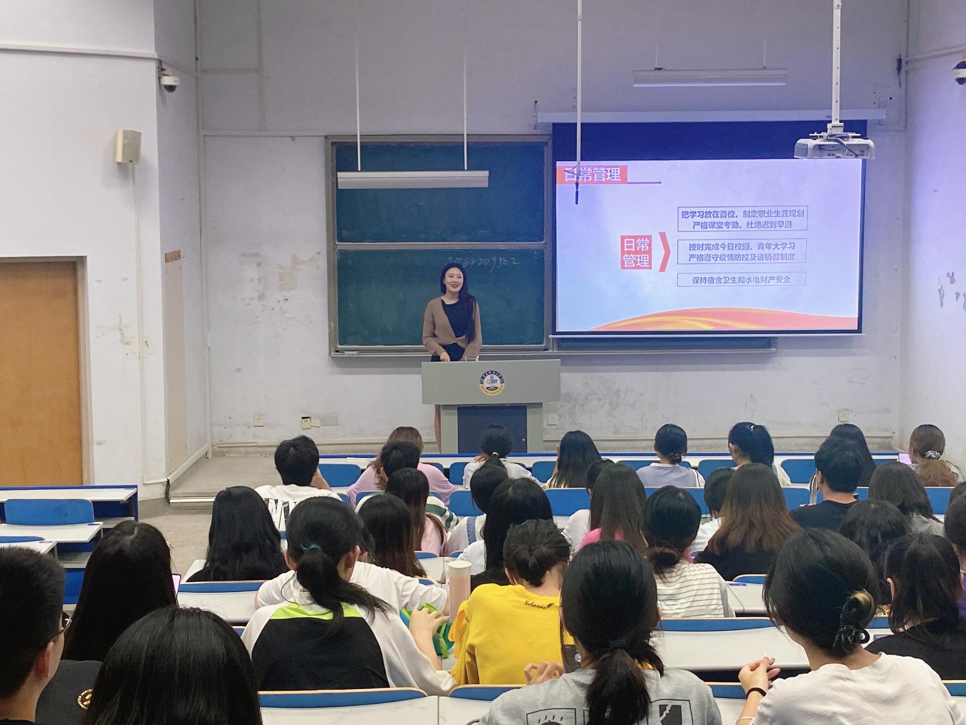 为引导2020级学生强化思想、规范品行、巩固学业、挖掘潜力,在新学期凝聚拼搏力量,以更加饱满的精神与奋进的姿态尽快适应大二的学习、生活节奏,9月8日晚,9001jcc金沙以诚为本2020级分专业召开“领跑新学期,做新时代的追梦人”开学第一课暨新学期教育大会。会议由2020级辅导员付凯、王安琪主持,2020级全体学生参加了此次会议。