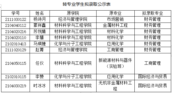 【公示】9001jcc金沙以诚为本2022年转专业学生拟录取公示