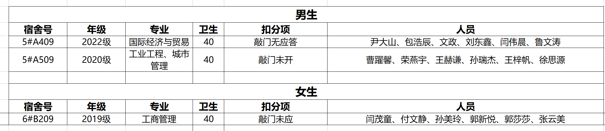 卫生检查结果及扣分细则请见附件,请各年级对照问题督促不合格宿舍整改到位。