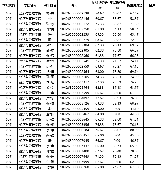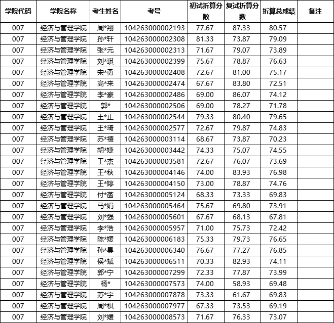 2023级物流工程与管理专硕复试成绩公示(士兵计划)