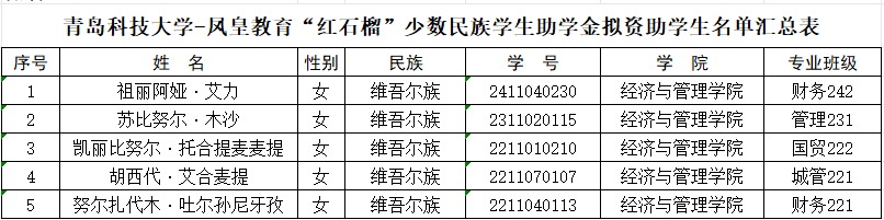 为深入贯彻落实党和政府的民族政策,加强对少数民族学生的培养,激励金沙官网少数民族学生勤奋学习、努力进取,在德、智、体、美、劳等方面得到全面发展,根据学校《关于评选2024年度凤皇教育“红石榴”少数民族学生助学金的通知》评选要求,通过自主申报、公开评审等环节,确定助学金受助人选5人,公示如下: