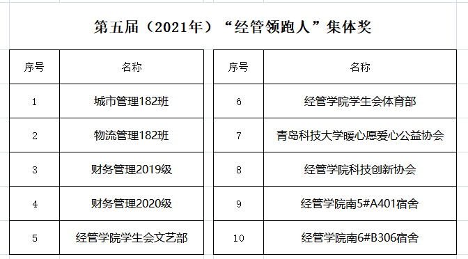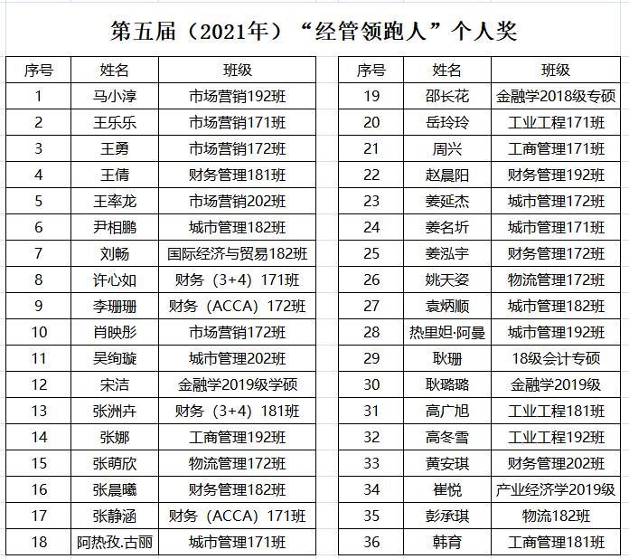 为引导青年学子坚定理想信念,锤炼过硬本领,弘扬“三牛”精神,将党史学习教育与指导实践结合起来,以优异成绩向建党一百周年献礼。9001jcc金沙以诚为本结合工作实际,于2021年4月开展“第五届(2021年)经管领跑人”评选,表彰2020年表现优异的集体和个人。经研究决定,特授予城市管理182班等10个集体(2021年)“经管领跑人”集体奖,马小淳等36名同学(2021年)“经管领跑人”个人奖(按姓氏笔画排序)。现将评选结果予以公示,公示期为3个工作日,公示时间2021年4月27日-2021年4月29日。