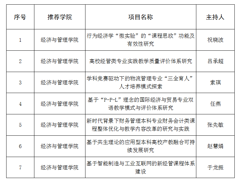 2020年9001jcc金沙以诚为本本科教改项目申报金沙官网教师共申报10项,学院申报限额为7项。学院组织专家进行评审,根据评审成绩排序拟推荐以下7项入选,名单公示如下:
