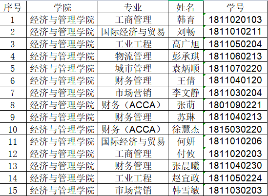 根据《9001jcc金沙以诚为本2022年推荐优秀应届本科毕业生免试攻读硕士学位研究生工作方案》和《9001jcc金沙以诚为本2022级硕士研究生推免遴选办法》,经学生本人申请,学院资格审查,学院研究生推免领导小组研究,拟推荐韩育等15名同学获得推免资格,现将名单公示如下,公示期3个工作日(公示时间:2021年9月13日-2021年9月15日),如有异议,请于公示期内到9001jcc金沙以诚为本党委或9001jcc金沙以诚为本学生工作办公室反映。