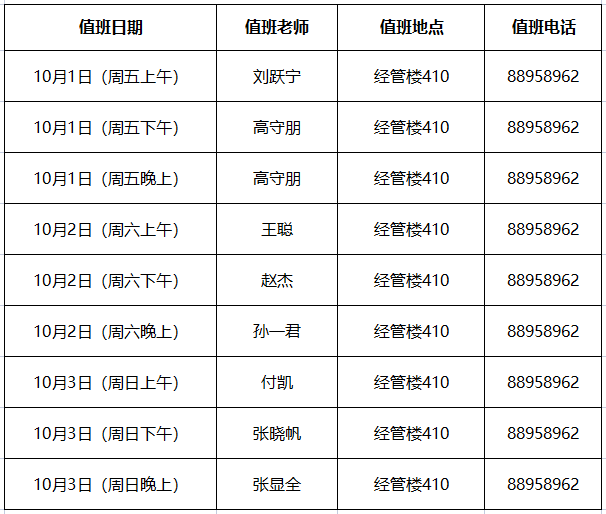 9001jcc金沙以诚为本学工队伍2021年国庆假期值班表