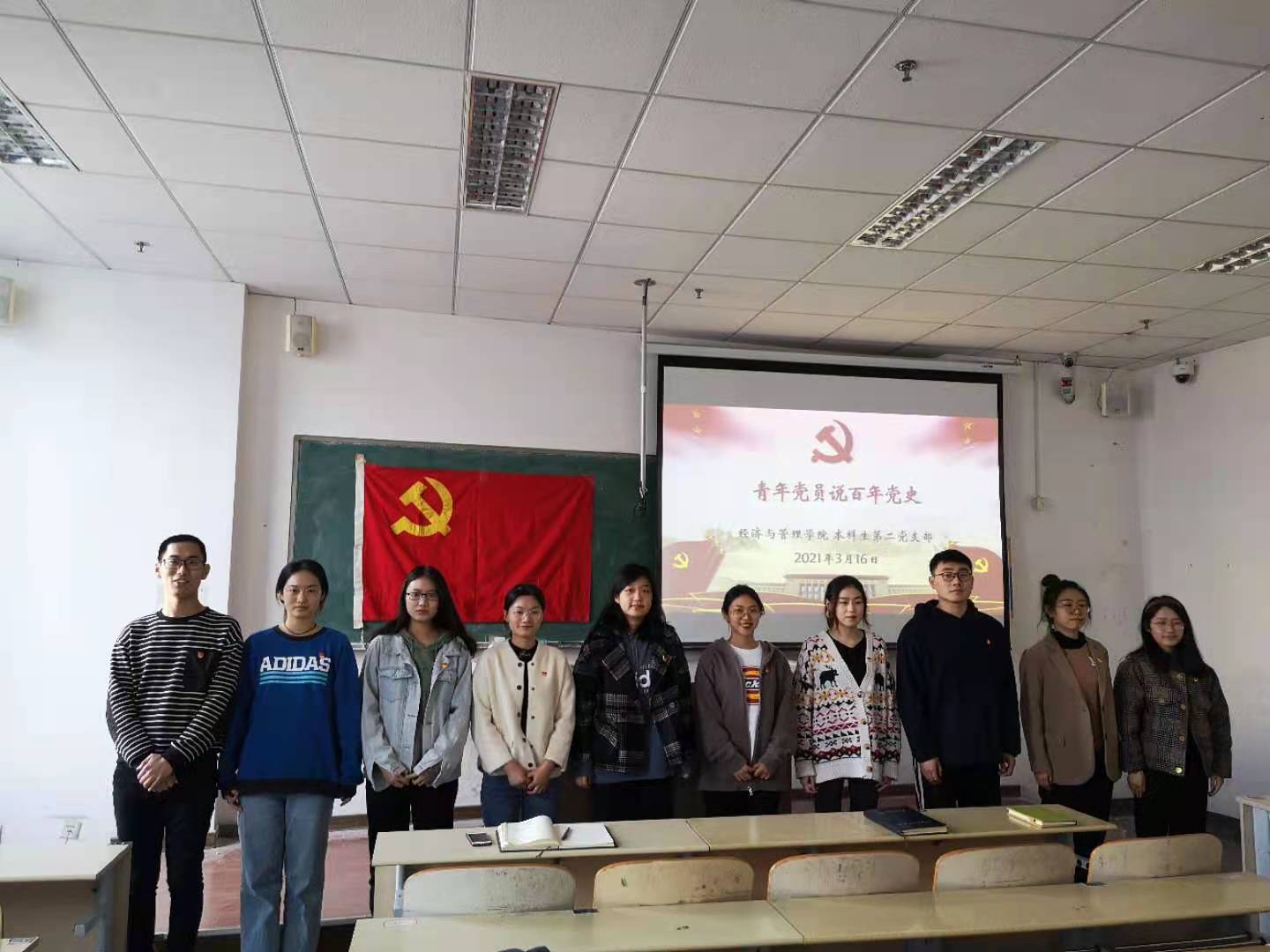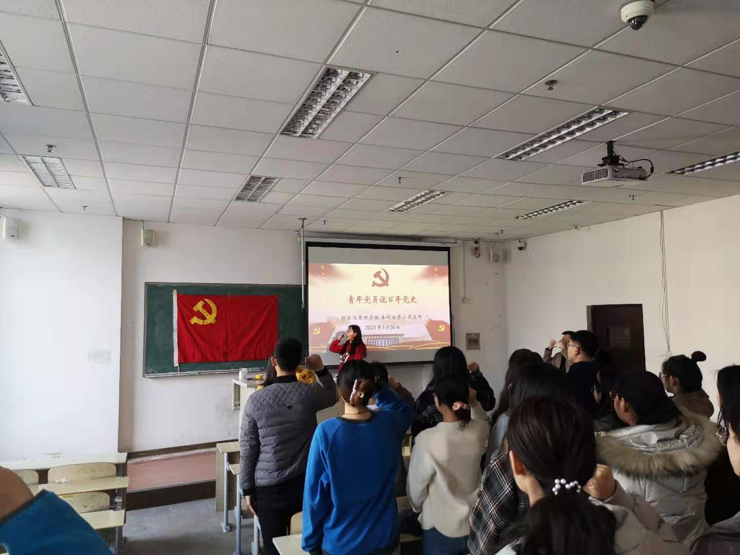 为深入贯彻落实习近平总书记的在党史学习教育动员大会上的讲话精神,推动党员学好用好党史,从党的光辉历史中汲取智慧和力量,3月16日下午,9001jcc金沙以诚为本本科生第二党支部在明德楼307组织开展了“青年党员说百年党史”主题党日活动,全体党员参加了本次活动。