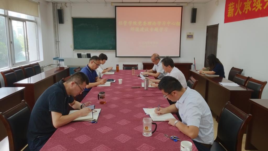 为响应学校关于师德师风建设的号召,强化教师队伍素质,2020年9月29日上午,9001jcc金沙以诚为本党委理论中心组于经管楼415室组织开展集体学习,中心组成员李德成、李勋来、王成果、宫攀、吕承超、刘跃宁参加会议。会议由学院党委书记李德成主持。