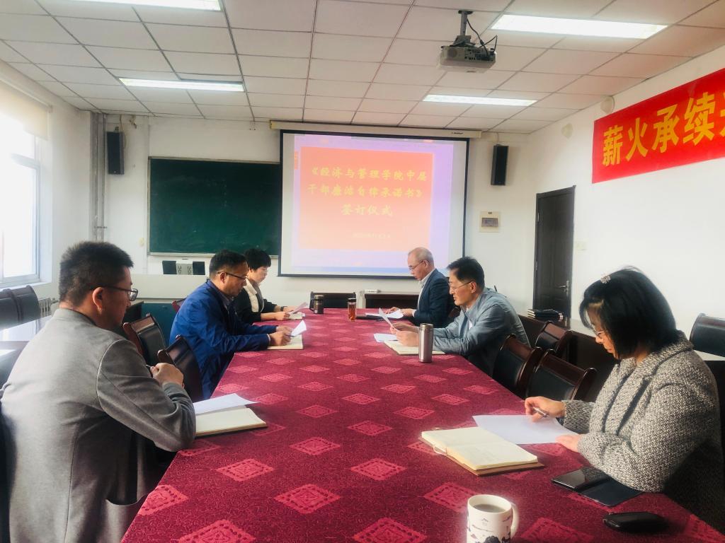 2020年11月2日下午,9001jcc金沙以诚为本于经管楼415会议室举行《中层干部廉洁自律承诺书》签订仪式,学院党政领导班子参加,学院党委书记李德成主持仪式。