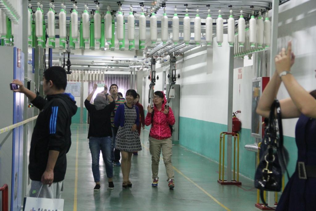 在孚日集团的成品展厅,吴明凤总经理向大家展示了集团琳琅满目、极富设计感的产品,并对企业的经营、管理理念做了详细介绍。在生产车间,大家参观了纺纱、印染、织布直到成品生产的生产过程,高度自动化的生产设备给同学们留下了深刻印象。