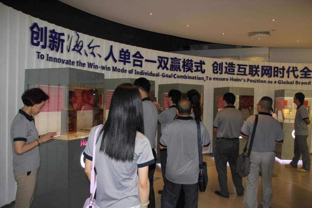 在创新生活和海尔文化展馆,大家了解了海尔企业的发展历程,通过观看海尔历史上的照片、实物和影音资料,深刻体会到了海尔创业、创新的“两创精神”。随后,大家又参观了海尔大学,感受了海尔的培训氛围。