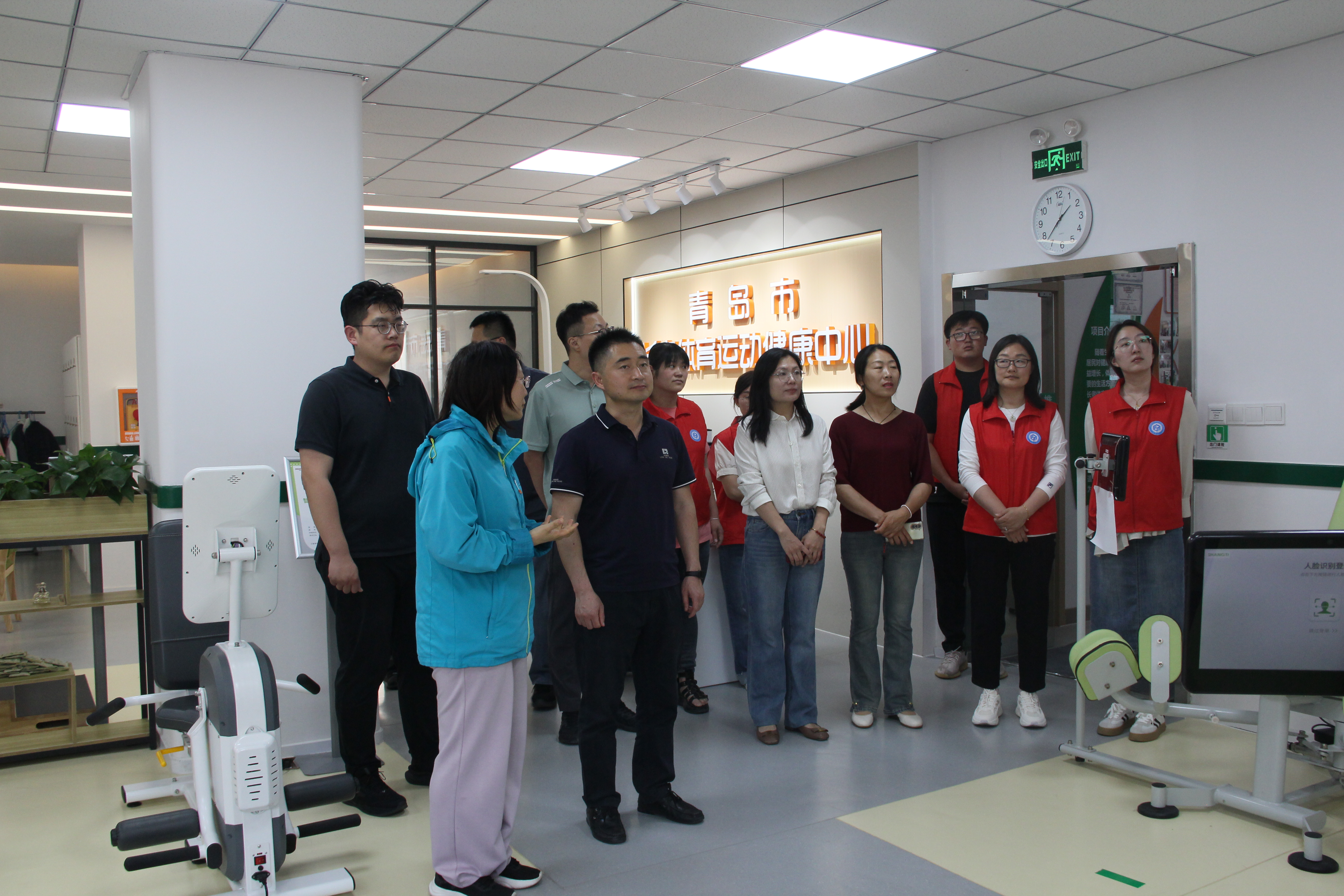 活动伊始,与会人员共同参观了山东省首家“长者运动中心”。该中心是盐城路社区落实国家“一老一小”政策的重要举措,通过整合办公空间、引进专业团队,打造了集运动、休闲、娱乐于一体的综合性康养服务平台。牛宝卫副书记对社区在养老服务领域的创新实践给予高度评价,并介绍了学院在相关领域的教学研究成果。