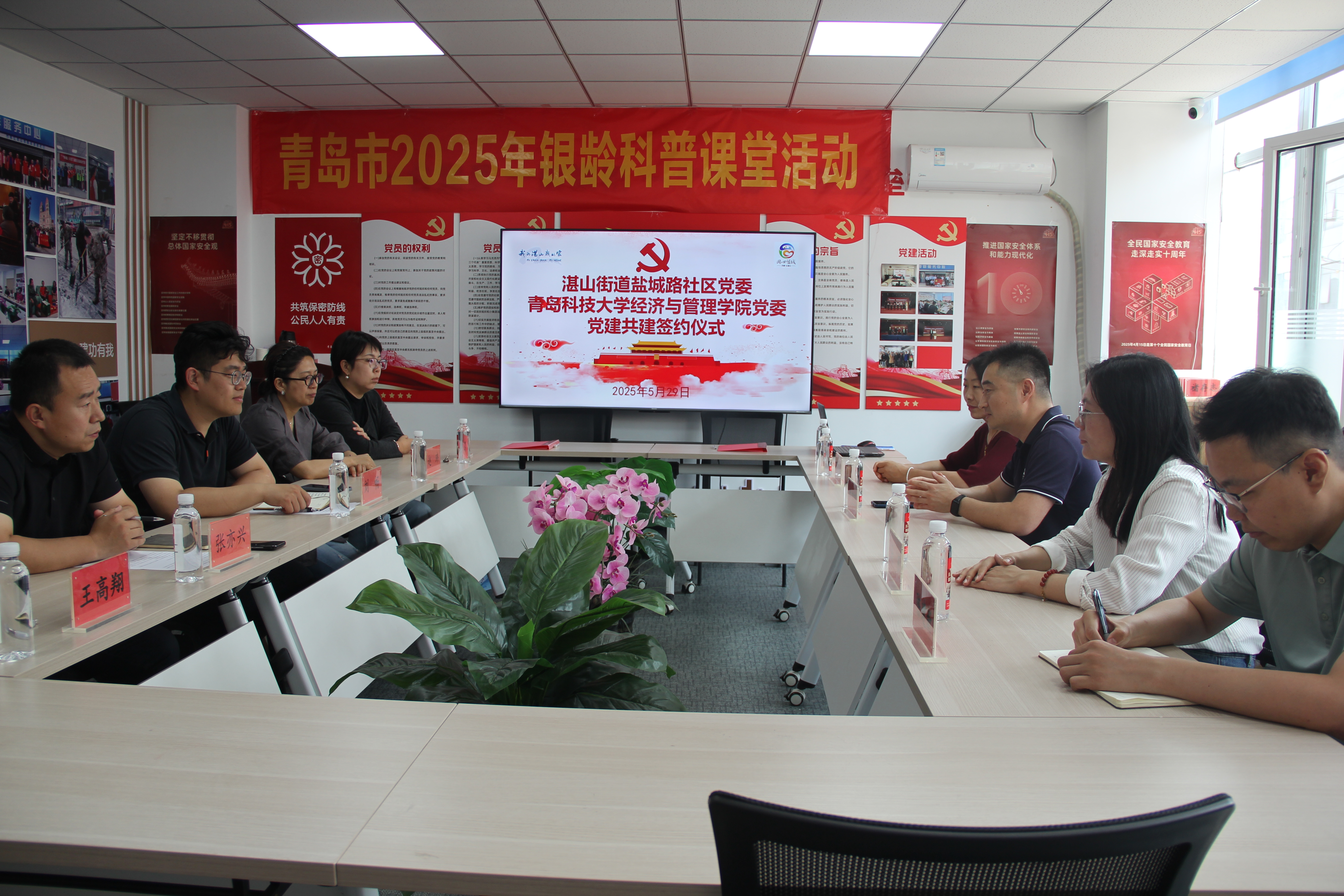 在随后的座谈会上,刘畅书记详细介绍了社区基本情况及共建工作规划。他表示:“社区作为基层治理的重要单元,也是青年成长的沃土,期待通过共建平台,为盐城路社区注入青春力量。”牛宝卫副书记介绍了9001jcc金沙以诚为本概况并从人才培养角度阐述了共建意义:“青科大9001jcc金沙以诚为本一直十分重视学生工作,特别是社会实践方面9001jcc金沙以诚为本的学生们多才多艺,此次合作将实现高校教育资源与社区服务需求的有效对接,为提升社区治理水平注入新动能。”