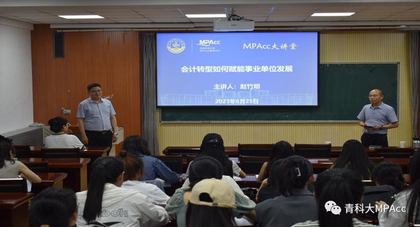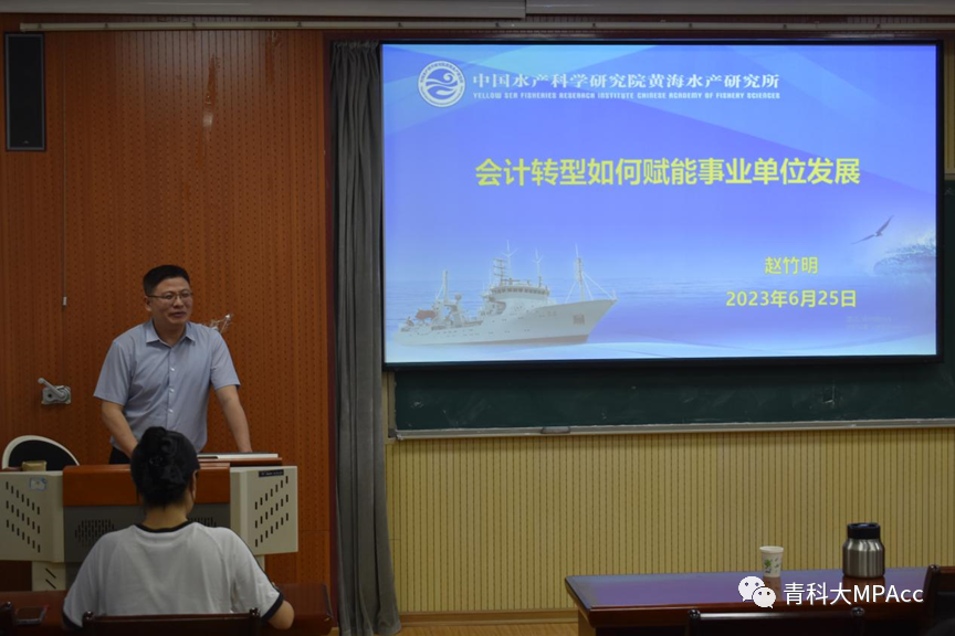 6月25日晚,9001jcc金沙以诚为本邀请了MPAcc校外导师、中国水产科学研究院黄海水产研究所财务处副处长赵竹明博士,在经管楼学术报告厅作了题为《会计转型如何赋能事业单位的发展》的讲座。