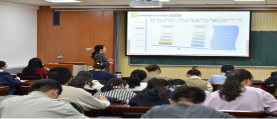 报告会开始孟老师向大家简单介绍了自己的职业生涯经历,称自己也是非常普通的人,并教导大家要接受平凡但不甘于平凡。接下来孟老师从职业生涯规划的概念、为什么做以及如何做好职业生涯规划给大家做了介绍。孟老师强调大学阶段的职业生涯规划是职业的准备期,应以终为始,为未来的就业和事业发展做好准备,孟老师还指出职业生涯规划应遵循的原则。