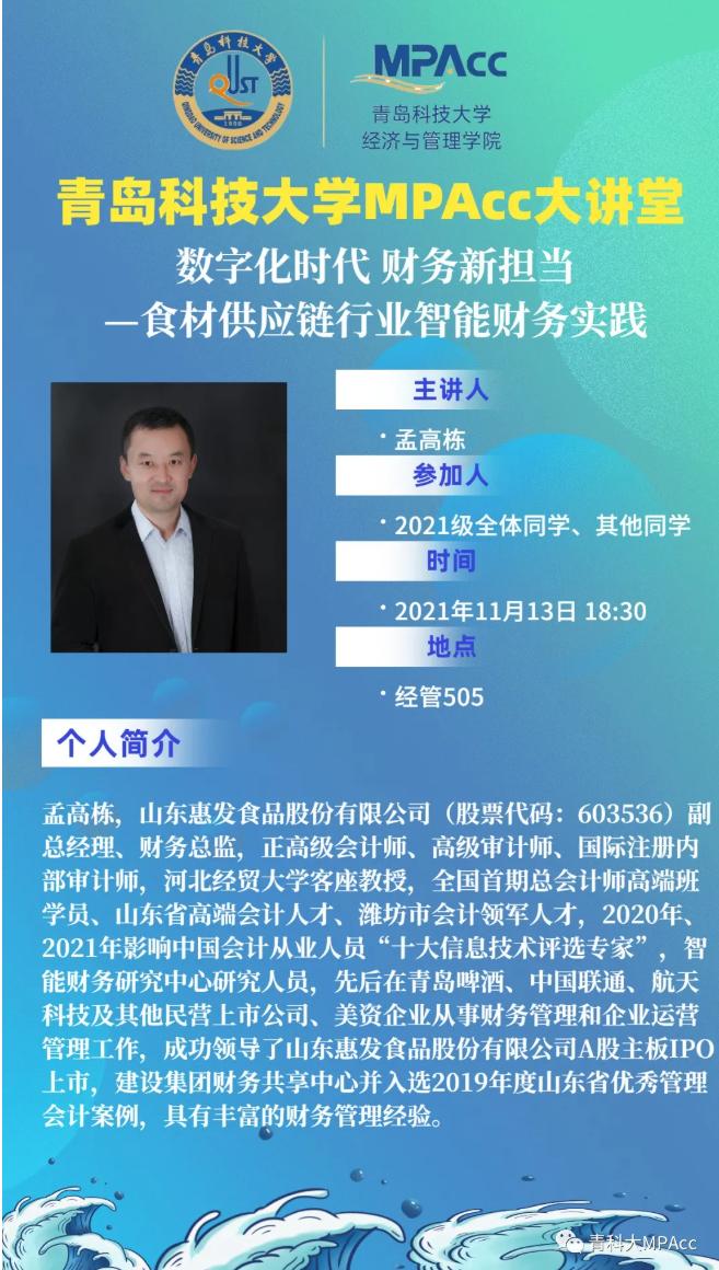 青科大MPAcc大讲堂|《数字化时代 财务新担当-食材供应链行业智能财务实践》