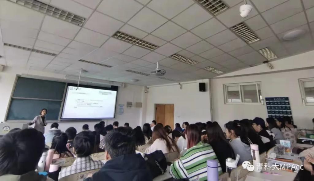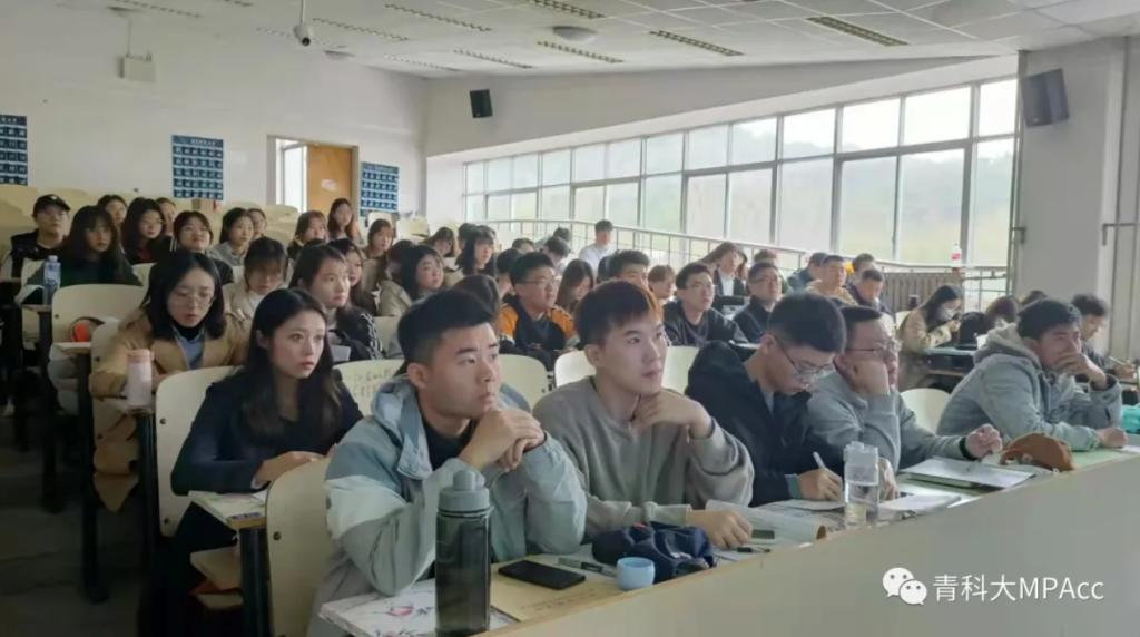 徐晓红老师凭着自己在财会界积累的经验和丰富的阅历,给学生们梳理了从校园人到职场人、从普通财务到管理者、从管理者到优秀领导者这几个职业发展重要转折点的注意事项;其次,她为大家介绍了青岛地铁经营模式、岗位职责以及全球低碳化大背景下青岛地铁的管理会计所面临的机遇与挑战,用有趣的案例告诉学生当代的会计拥有灵活创新思维的重要性;此外,徐晓红老师为同学们列举了一些财会人员的职业发展路径,例如去企业做财务、去金融机构或事务所等,同时分析了财会人员在经济全球化、数字经济、人工智能时代的发展方向,告诉同学们当今社会需要的是管理人员而非单纯的核算人员,财务复合型人才是“香饽饽”以及财务“互联网+”的必然趋势