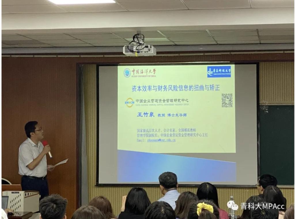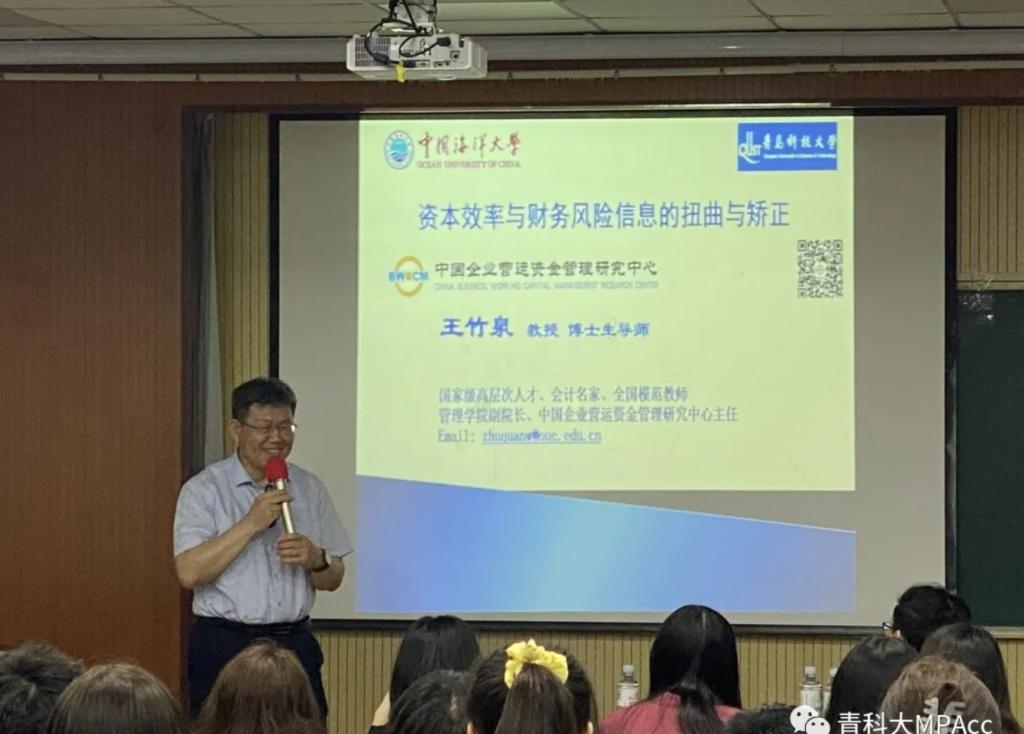 2021年6月9日晚间18:30,9001jcc金沙以诚为本MPAcc教育中心于9001jcc金沙以诚为本楼419教室,开展了MPAcc大讲堂主题讲座,本次讲座的主题是:资本效率与财务风险信息的扭曲与矫正,主讲人是中国海洋大学王竹泉教授。
