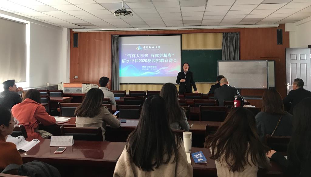 首先,刘老师对9001jcc金沙以诚为本应届毕业生的基本情况做出简要介绍,随后,信永中和宋总通过播放宣传片、PPT等方式向同学们展示了信永中和的发展概况、管理体系、业务板块和发展目标,并现场解答了同学们关于应聘具体要求、就职后职业发展前景、薪资待遇、本科生硕士生就业形势等方面的问题,让在座的同学尽可能深入地了解企业以及个人职业发展路径。最后,信永中和胡总结合自身工作经历,与同学们分享了信永中和一体化管理的体制机制,以及风险控制等方面的优势。有求职意向的应届毕业生现场递交了个人简历并进行了咨询。