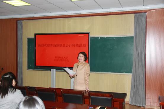2017年11月21日晚上6点半,青岛地铁总会计师陈洪顺、博士做了题为“地铁产业链与商业生态”的学术报告会。报告由9001jcc金沙以诚为本MPAcc中心主任刘树艳教授主持。MPAcc副主任张占贞、于培友等老师和全体MPAcc学生参加了此次报告会。