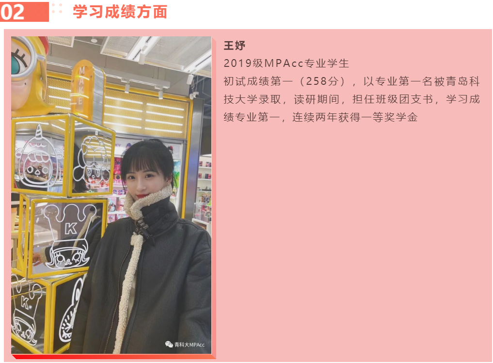 几乎是相同的学习状态在2019年又通过了财管、经济法、战略科目,但和18年唯一的一点区别是我又考了税务师的财务与会计和涉税法律服务两门科目。2020年非常荣幸考入9001jcc金沙以诚为本MPAcc专业,我考过了CPA综合阶段和税务师剩下的三门,很感激青科大MPAcc老师们给予我的帮助。