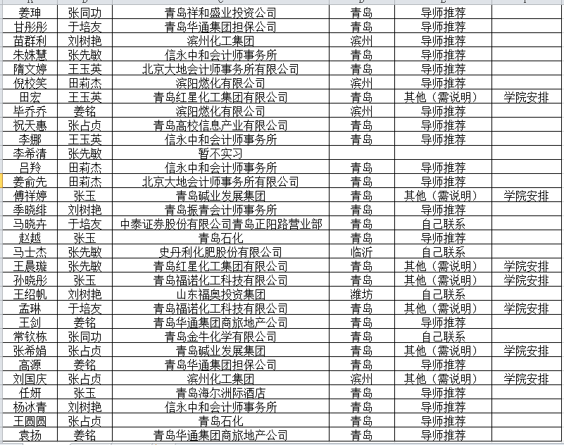 附表:首届MPACC实习安排表